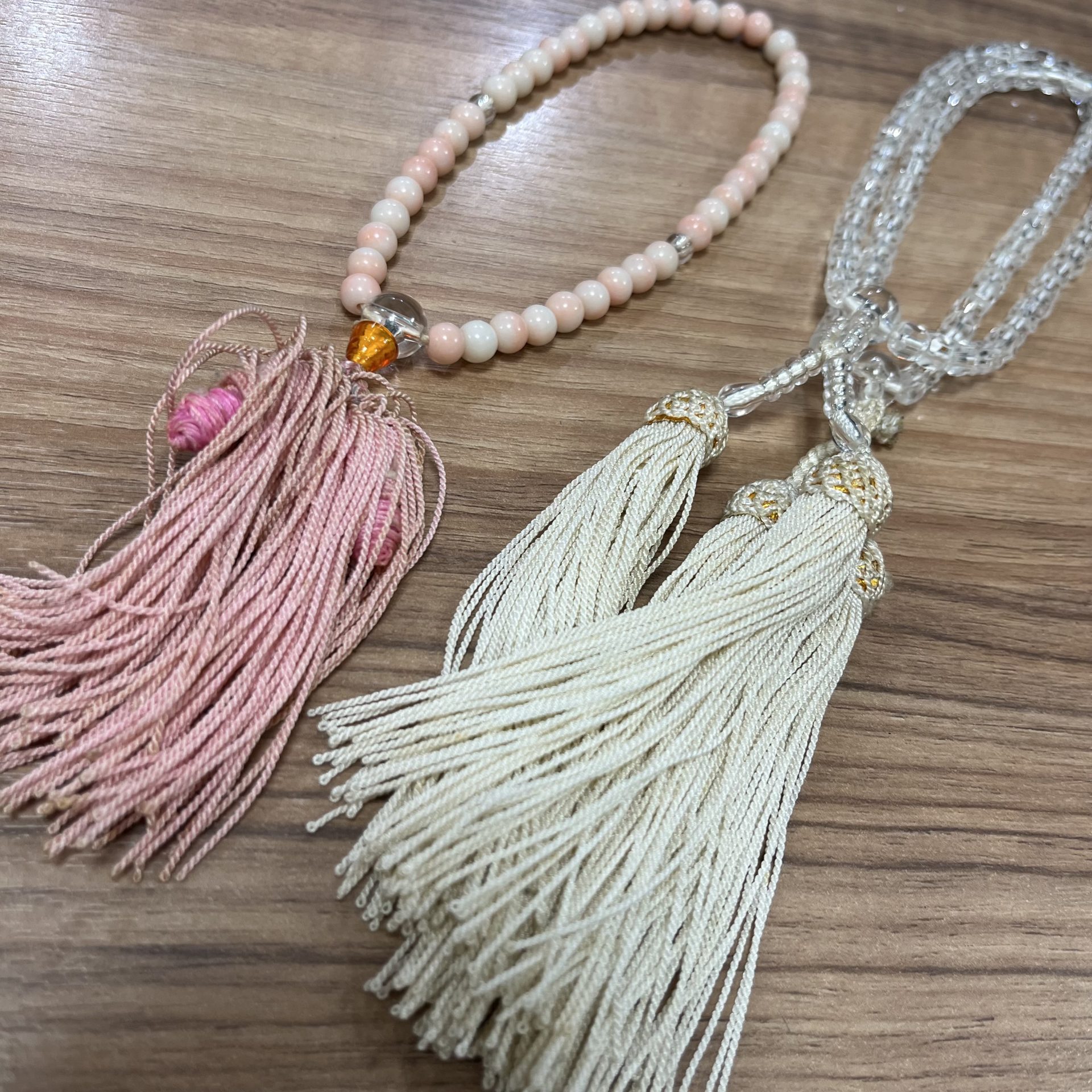 お手元のお念珠、今どんな状態ですか?たまにしか使わないからこそ、時々確認しておかれては?というご提案。房が可哀想なことになっていたり、ぷつんと切れてしまったりしてどうしたら良いか分からずそのままになっていたり、そんな方のご相談を時折りいただきます。