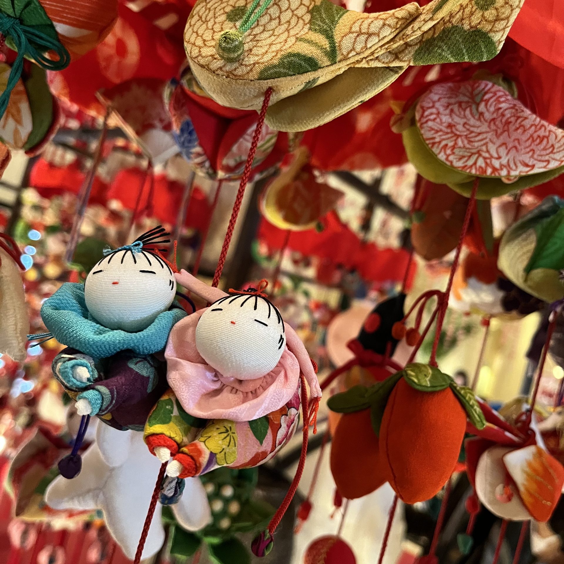 手間暇を惜しみなく注ぎ込まれたであろうひとつひとつの御飾り達が、こだわり抜かれた順に配置され吊らされていく。構想から仕上がりまでただただ想いと手間暇を溢れるほど注ぎ込まれるそれぞれが、あるべきところへ飾られてゆき全体でひとつの雛飾りとして在る。 ひとつひとつが全部で 全部こそがイチで…。 この世はそんなふうにできているのだと、教わっているのかもしれない😊